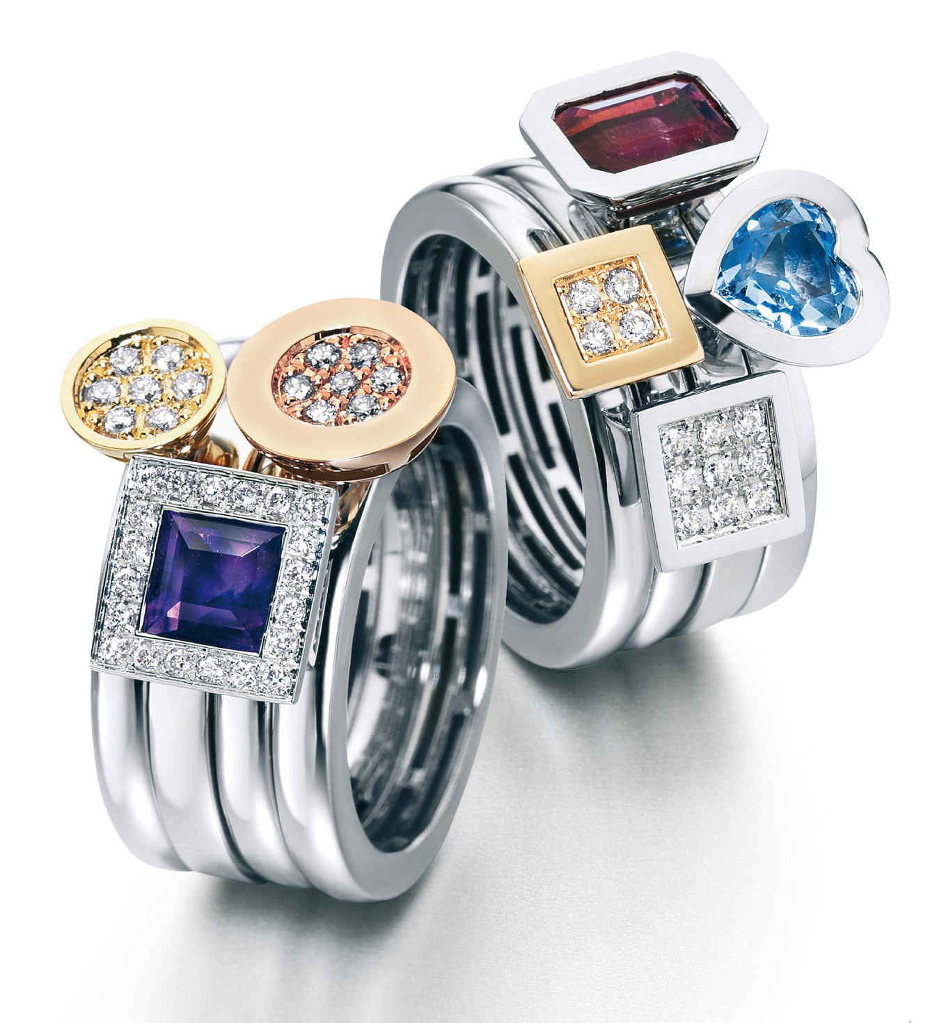 Puedes escoger anillos con una, dos o tres bocas con la combinación que más te guste: diamantes blancos, negros y marrones; amatistas, citrinos, cuarzos, fumés y lemon, periodotos, topacios, turmalinas… El aro de los anillos puede ser en oro blanco, amarillo o rosa.