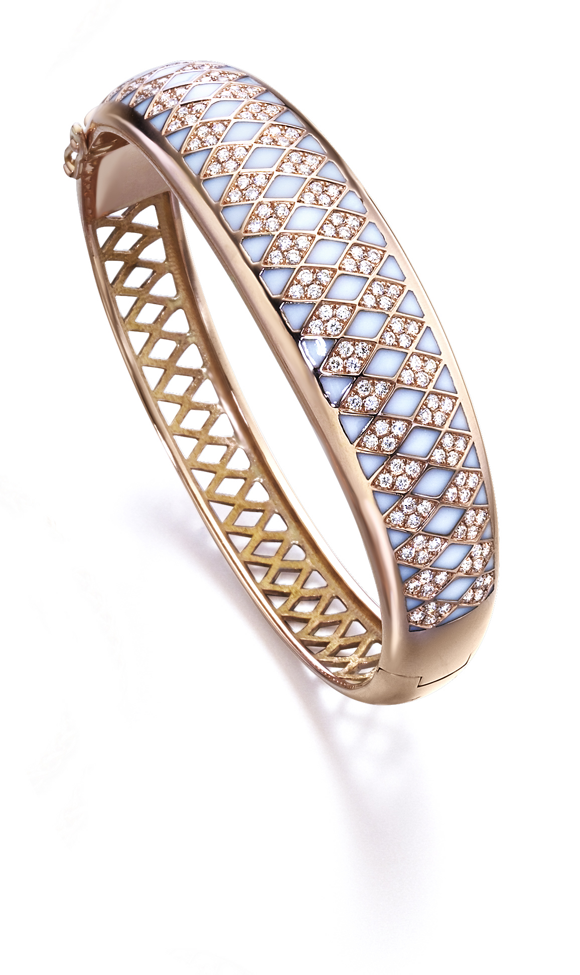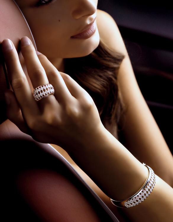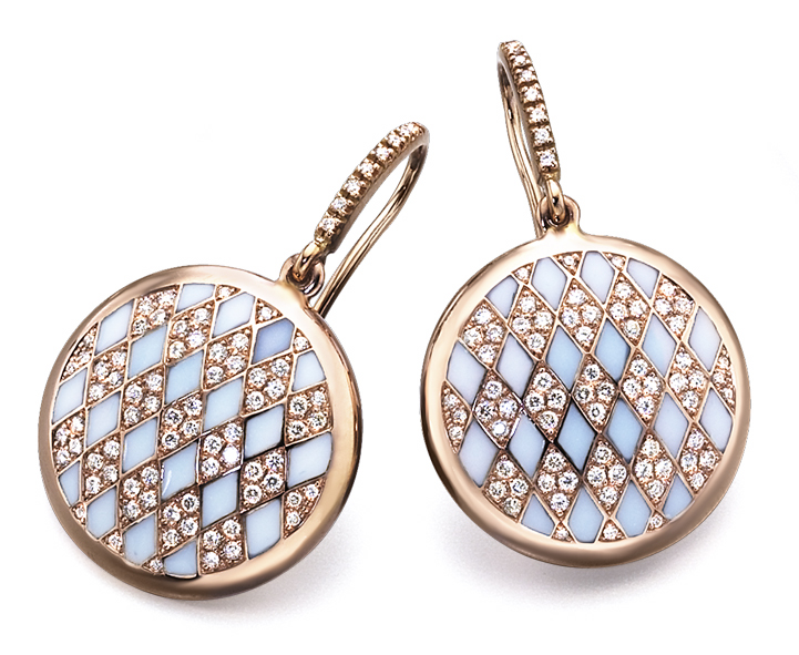 Veranos junto al mar, noches de fiesta, glamour en todo momento. antonio soria te propone la colección Arlequín, con motivos geométricos, en los que se combinan el oro rosa y los diamantes de diferentes quilates, con el esmalte blanco opalino.