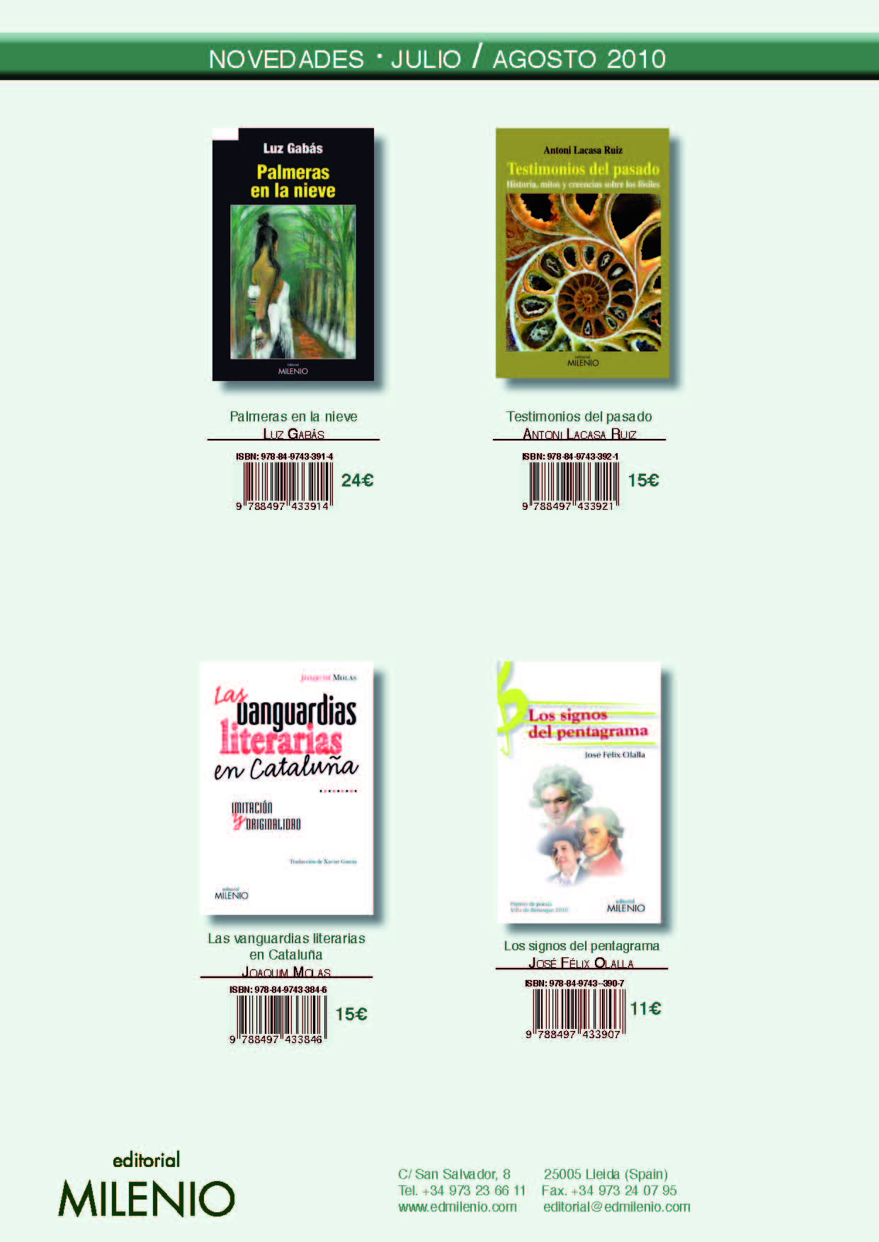 Si deseas conocer todas la novedades del mes de julio de Editorial Milenio, sólo tienes que hacer click aquí y el boletín, con las fichas de cada uno de los libros, se descargará en tu ordenador.