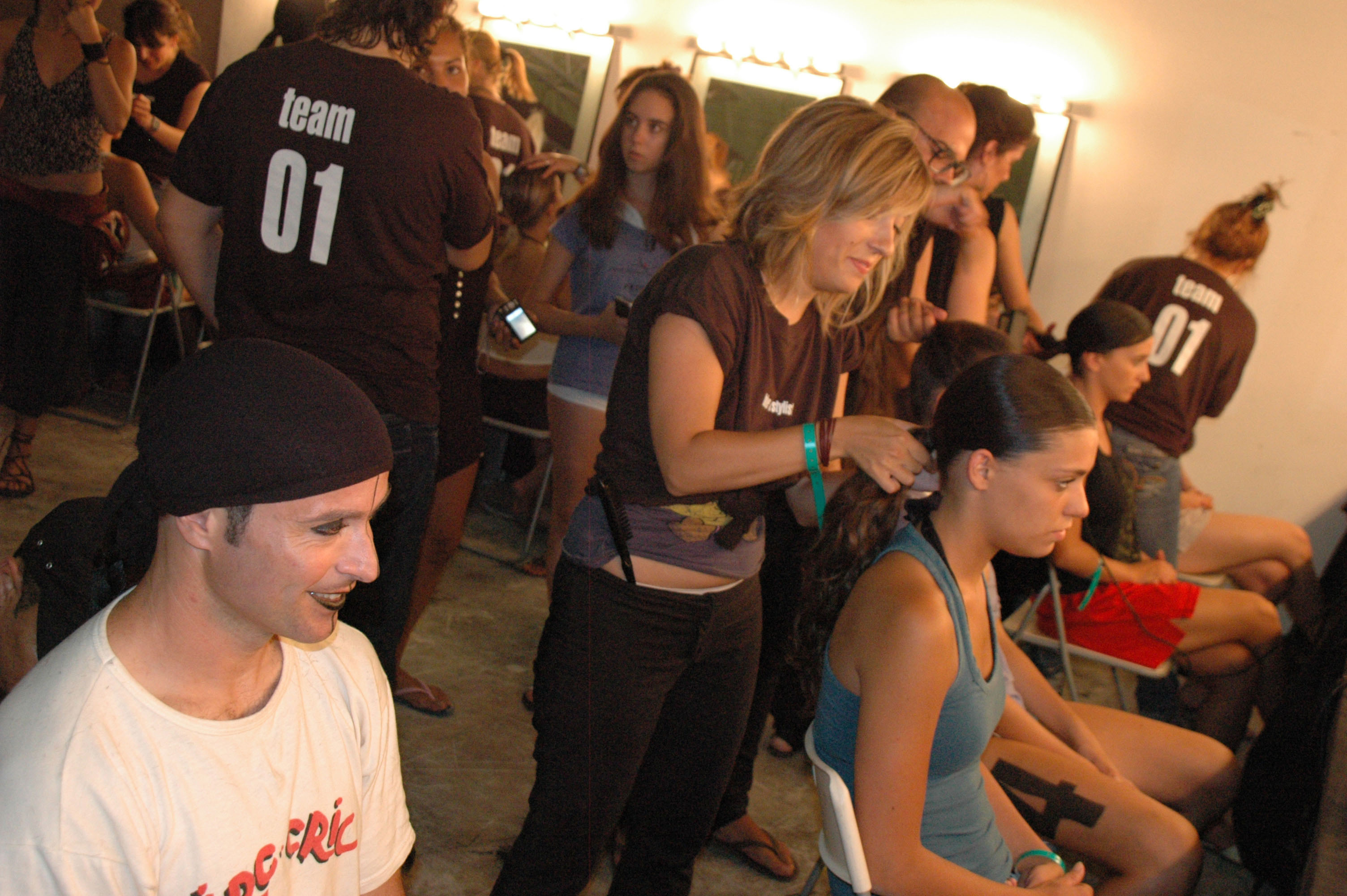 Bailarines y acróbatas pasaron, uno a uno, por las manos expertas de peluqueros y maquilladores de la firma dirigidos por Félix Rojas.