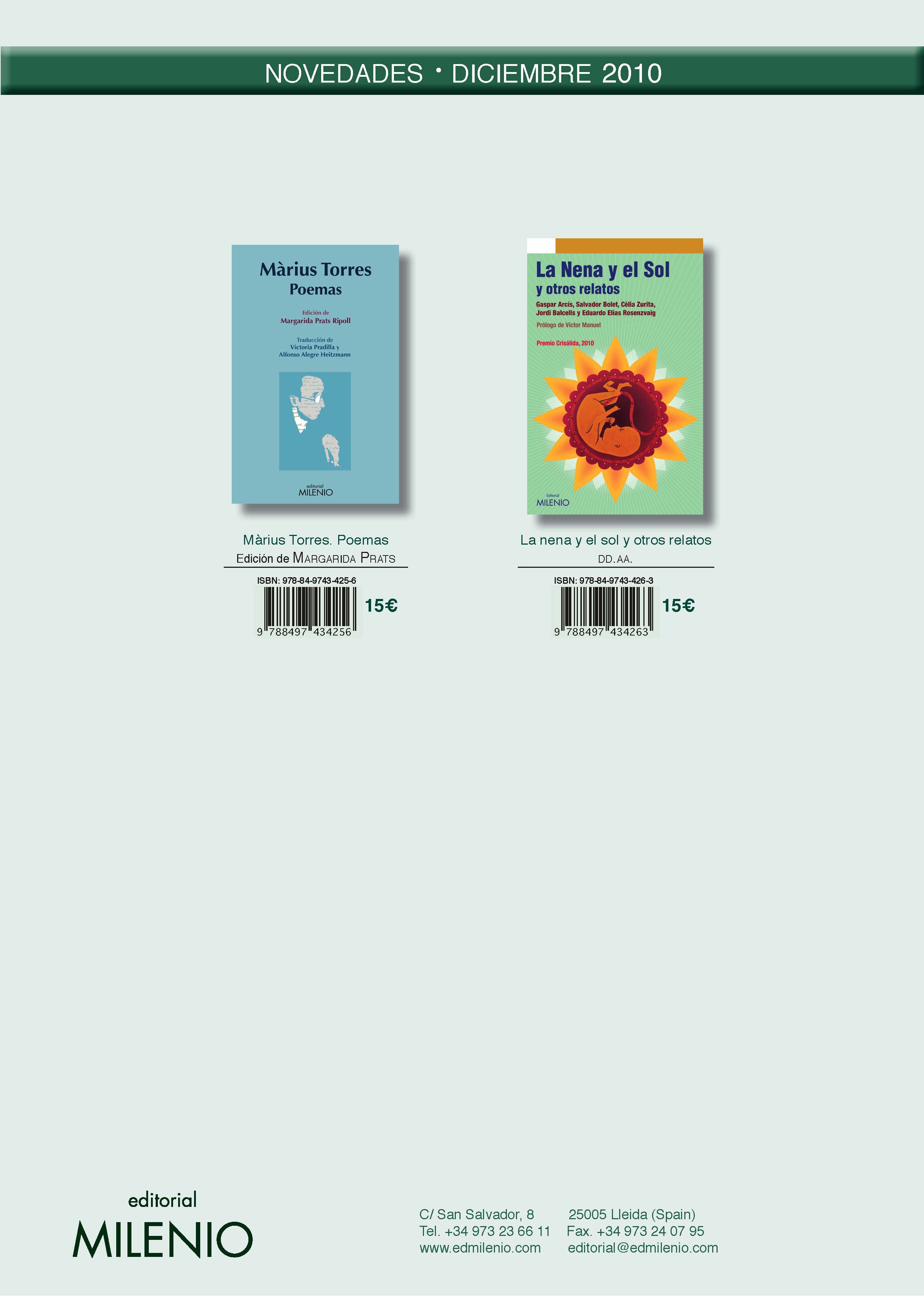 Si deseas conocer todas la novedades del mes de octubre de Editorial Milenio, sólo tienes que hacer click aquí y el boletín, con las fichas de cada uno de los libros, se descargará en tu ordenador.