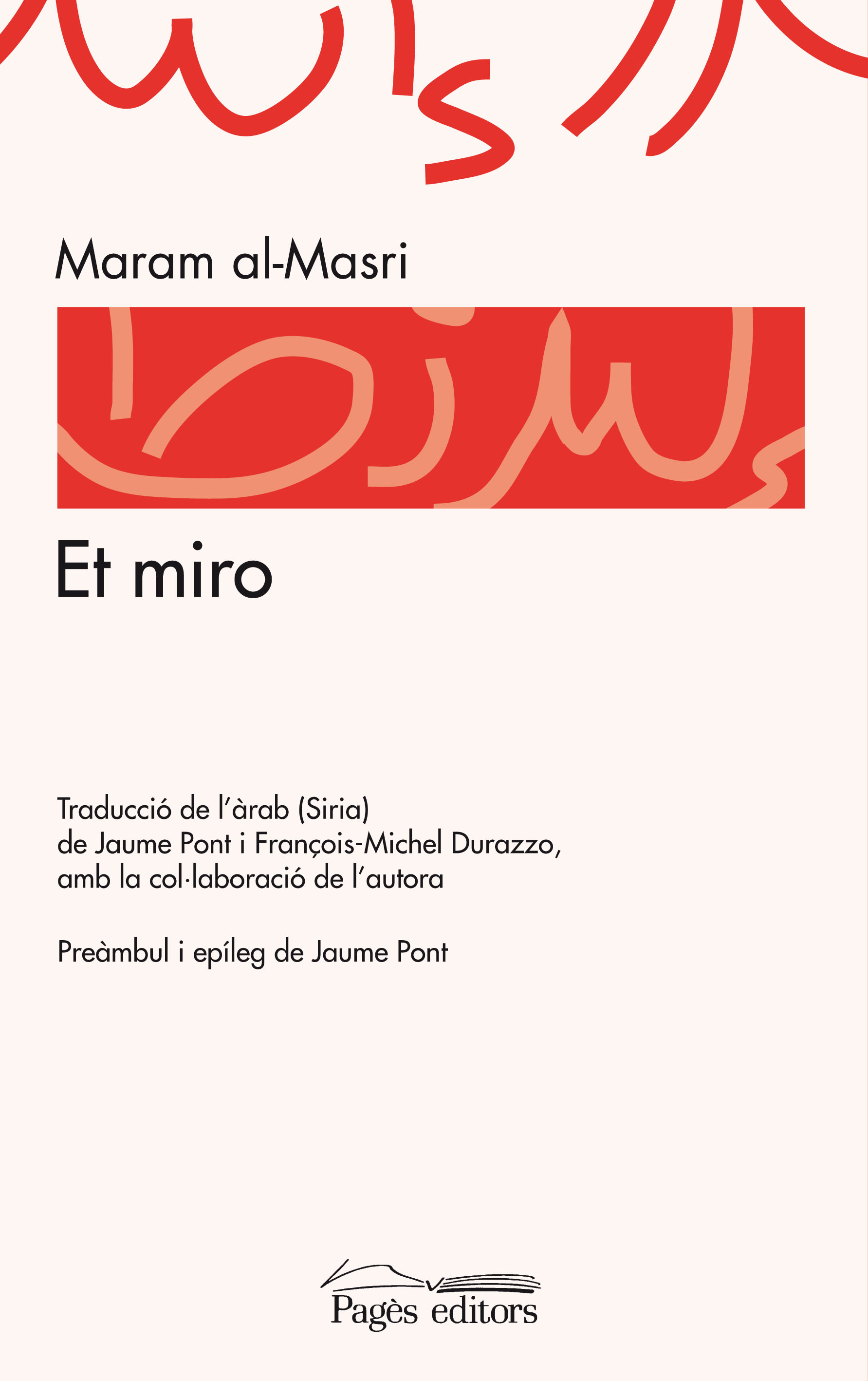 Et miro, de Maram al-Masri. Obra imprescindible de la més important poetesa àrab del moment. L’edició castellana d’aquesta obra va aconseguir un èxit sense precedents. Traducció de l’àrab de Jaume Pont i François-Michel Durazzo. Coberta en alta resolució en aquest enllaç.