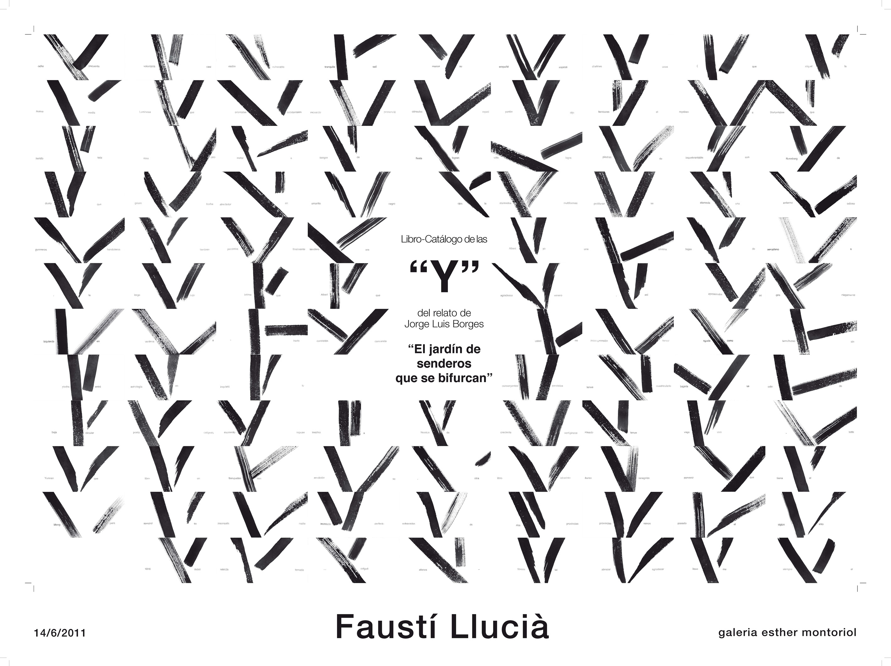 Amb motiu del 25è aniversari de la mort de l’escriptor Jorge Luís Borges, l’artista Faustí Llucià presenta el proper 14 de juny l’obra Libro-Catálogo de las “Y” del relato de Jorge Luis Borges “El jardín de senderos que se bifurcan”. La presentació tindrà lloc en el marc de l’exposició col·lectiva Heterogéneas Fatigas que s’inaugurarà el proper dimarts 14 de juny a les 19.30h a la GALERIA ESTHER MONTORIOL (Diputació 339, de Barcelona) i clourà el 31 de juliol.