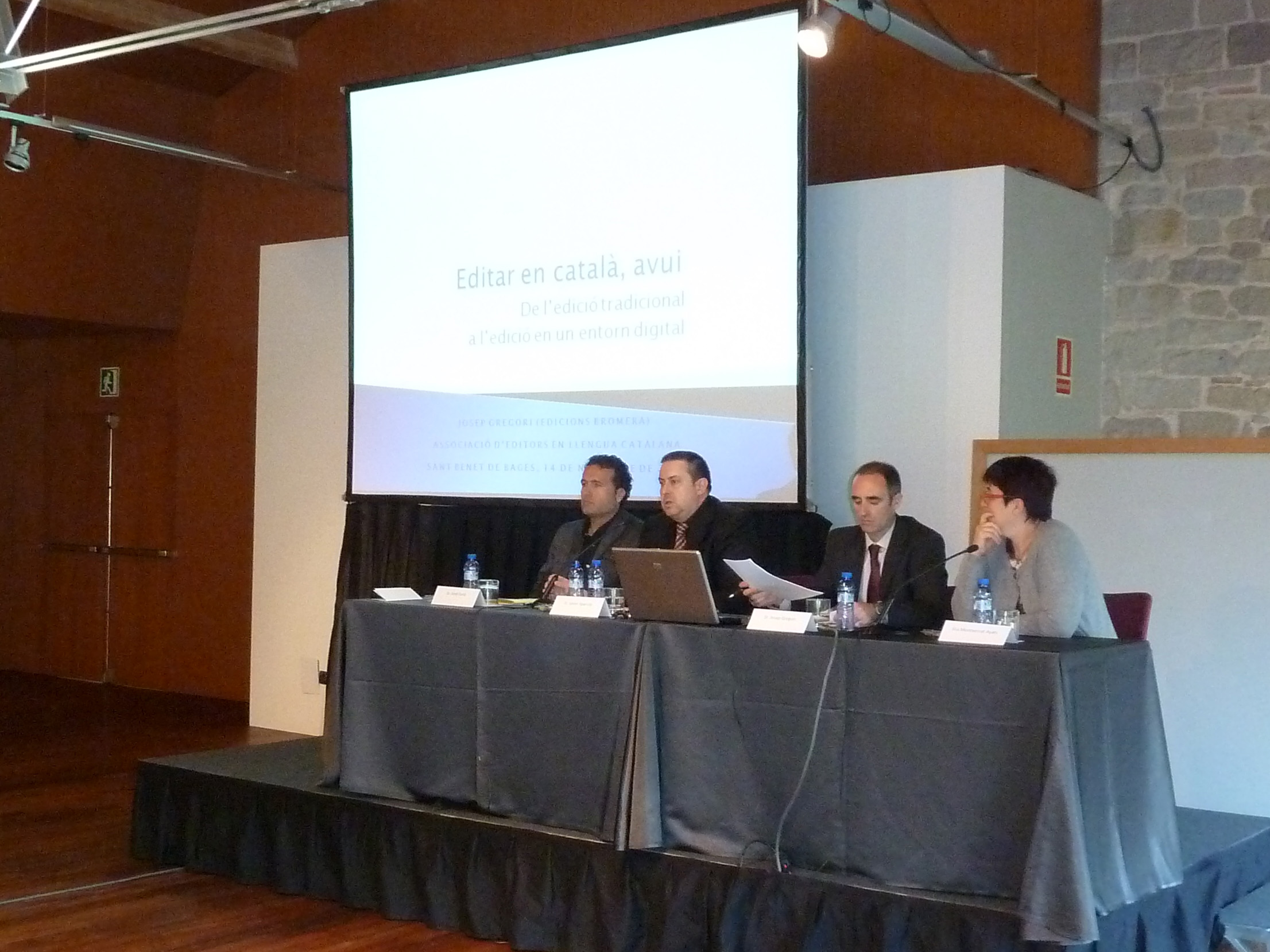 Les ponències van ser: Editar en català, avui: de l’edició tradicional a l’edició en un entorn digital, a càrrec de Josep Gregori (Edicions Bromera); Estratègies innovadores per a la prescripció i difusió dels llibres en català, a càrrec de Carles Geli (Diari El País); La cadena de distribució del llibre en català. Del llibre digital i l’arribada de les llibreries virtuals als nous mecanismes comercials del mercat, a càrrec de Marta Ramoneda (Llibreries La Central) i L’edició en llengua catalana i les institucions. Un nou marc d’acció? Les polítiques d’ajut a l’edició i a la lectura, a càrrec de Fèlix Riera (Institut Català de les Indústries Culturals).
