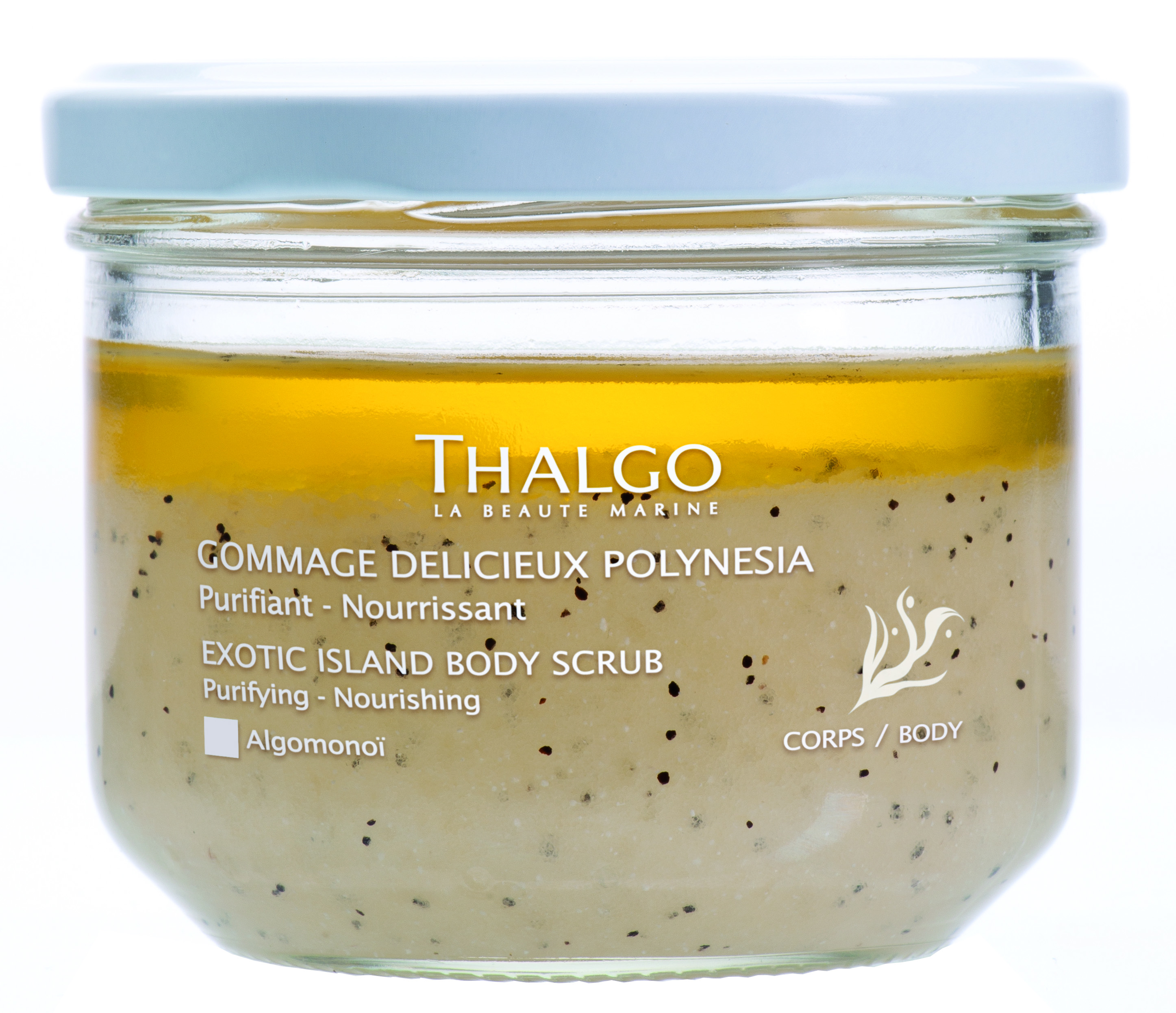 El activo principal utilizado en los productos utilizados en el Ritual Spa SPRIT DE POLYNESIE de THALGO es el Algomonoi, una mezcla oleosa extraída de la asociación original de tres vegetales de la Polinesia que posee propiedades hidratantes, suavizantes y protectoras: