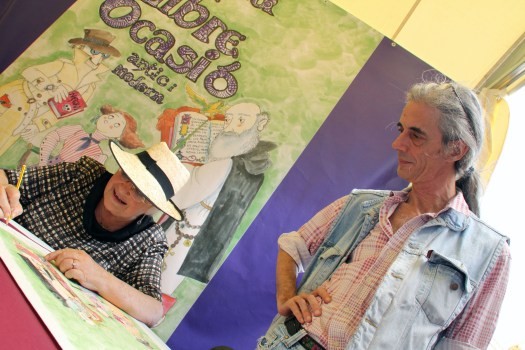 Pilarín Bayés, autora del cartell d’enguany, també ha assistit a la inauguració i ha signat algunes litografies numerades del cartell que ha fet per la FIRA.