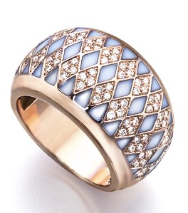 - Sortija Arlequín, diseñada en oro rosa con diamantes de 0,79 cts. La colección está formada por una pulsera, pendientes y colgante, todos en los mismos materiales pero con diamantes de diferentes tamaños.