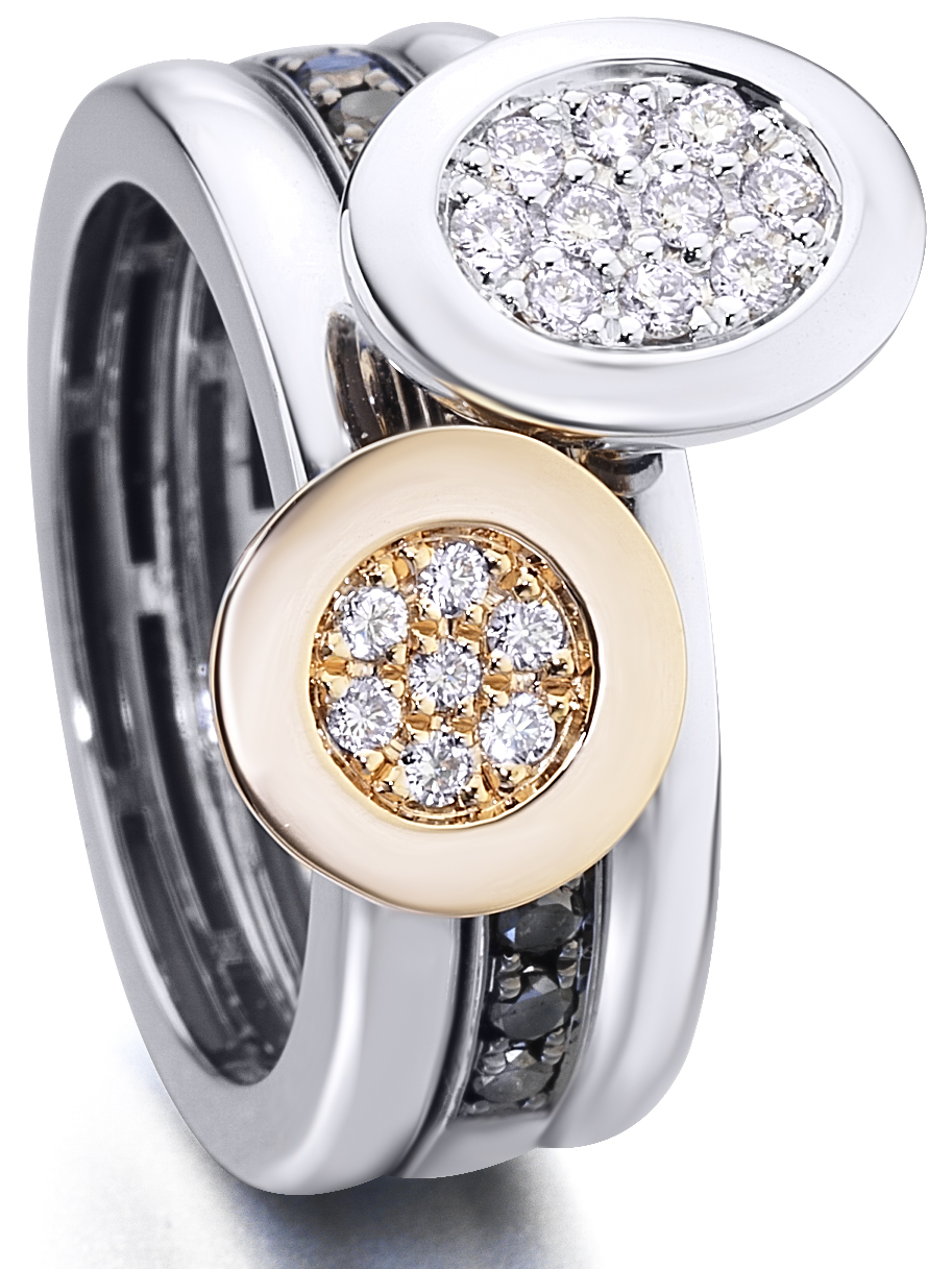 - Sortija Feelings: se compone de tres anillos en oro blanco, oro rosa, diamantes blancos y diamantes negros.