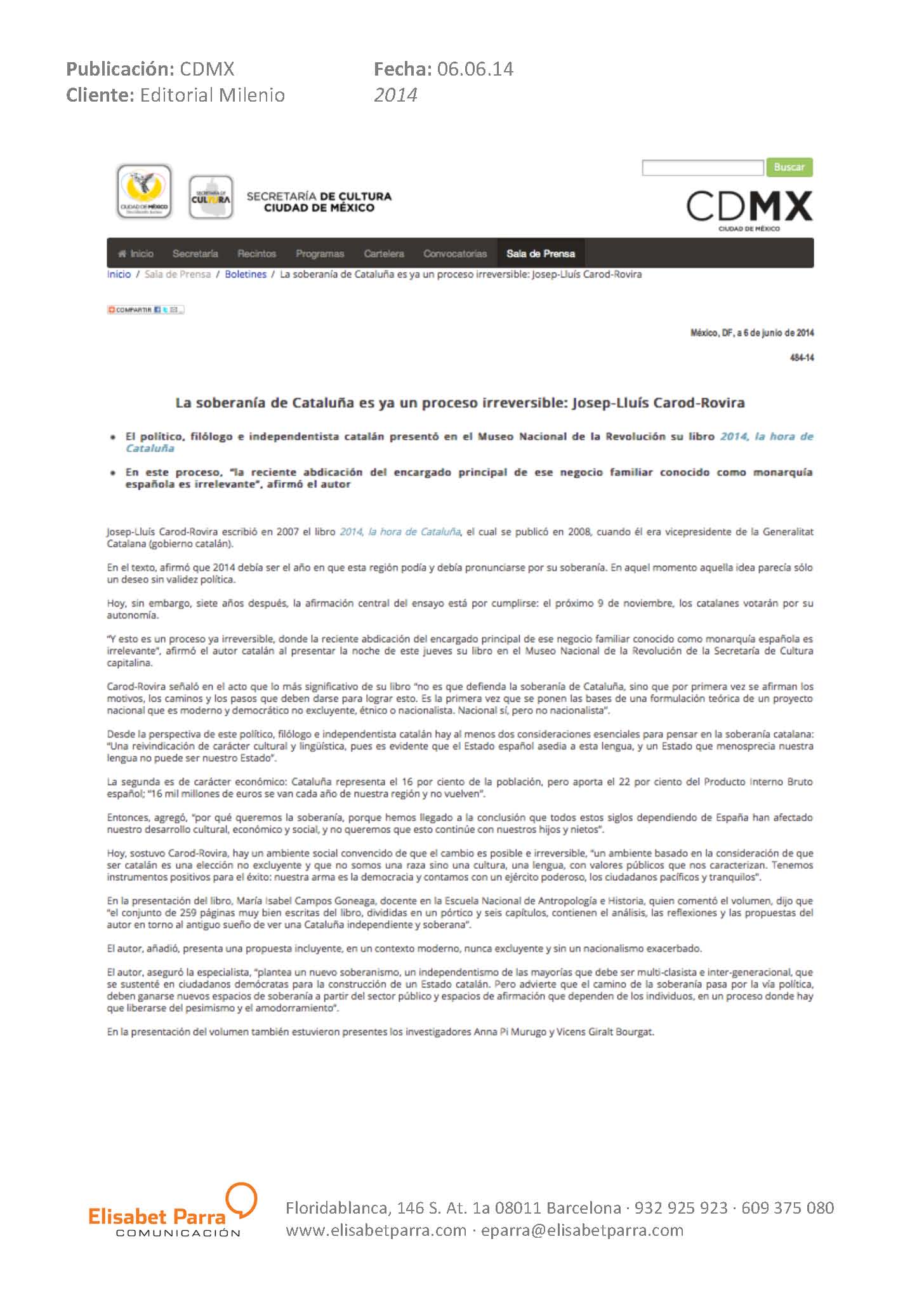 “Cataluña no se alzará en armas, sino en urnas y lo que quiere es votar”, asegura Carod-Rovira en México durante la gira de presentación de “2014″