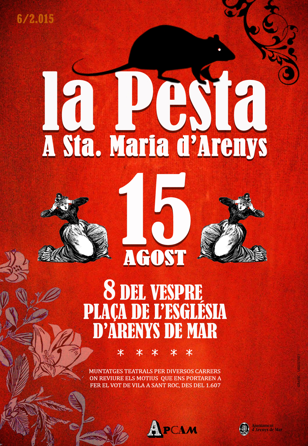 L’acte, que forma part de la Festa Major d’agost de la localitat, està organitzada per Amics del Patrimoni Cultural d’Arenys de Mar (Apcam) i l’Ajuntament d’Arenys de Mar i compta amb la participació de professionals de diversos àmbits, artístics i tècnics, que col·laboren desinteressadament en la representació de La Pesta a Santa Maria d’Arenys.
