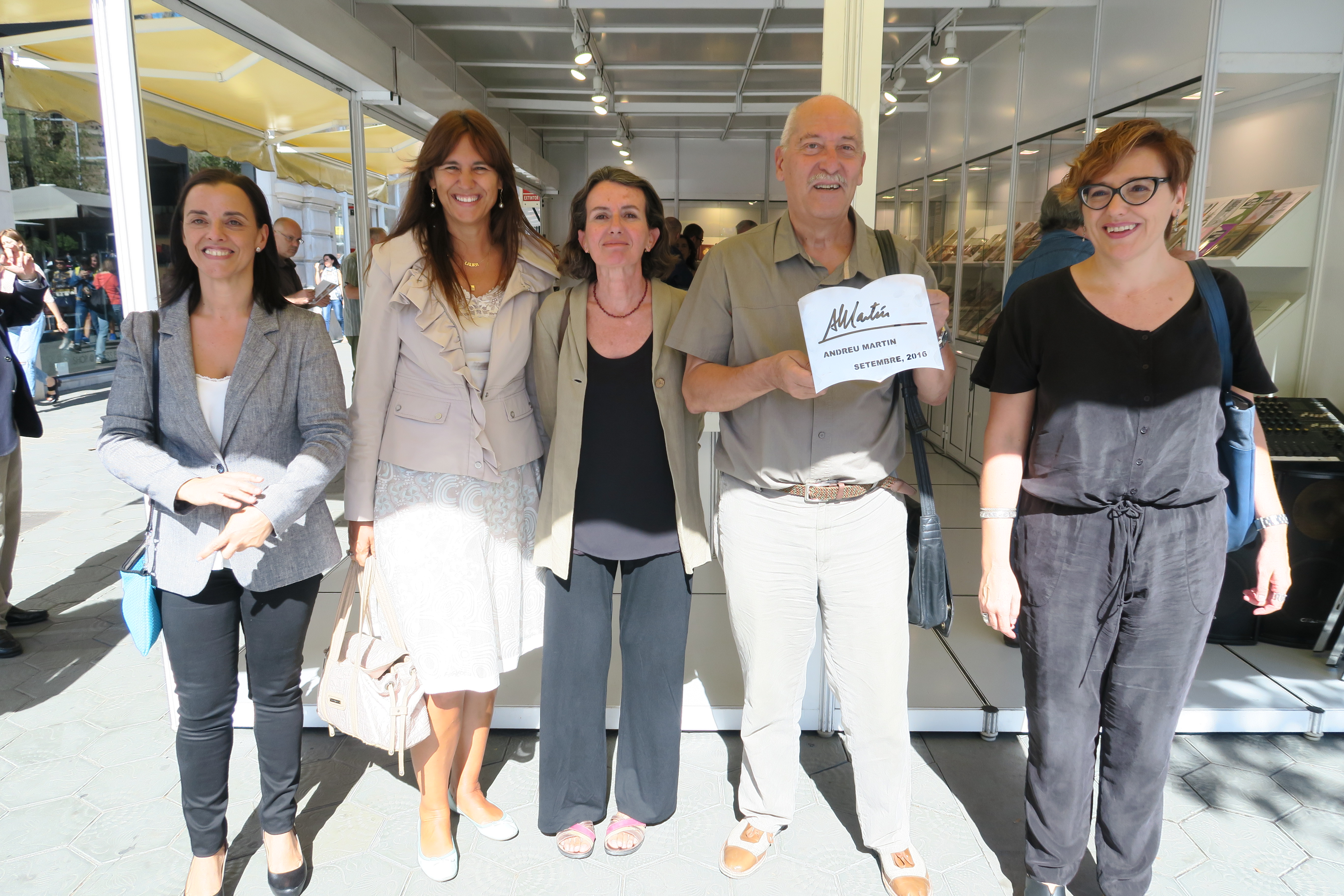 A continuació, Andreu Martín, com a pregoner i autor homenatjat, ha fixat una placa amb el seu nom al peu del monument al Llibre, situat a la vorera central de la Gran Via cantonada Passeig de Gràcia. El llaç final de l’acte inaugural l’ha posat Cristina Losantos, l’autora del cartell de la fira, que ha signat les litografies numerades d’Andreu Martín, Laura Borràs i Montserrat Ballarín.